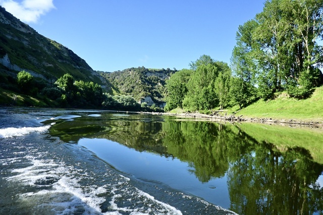 The river weaves through the valley, the remains of rock groins from the river steamer days, past relics of a proposed hydroelectric dam and the sacred battle site of Moutoa Island, to which Pakaitore Moutoa Gardens takes its name.