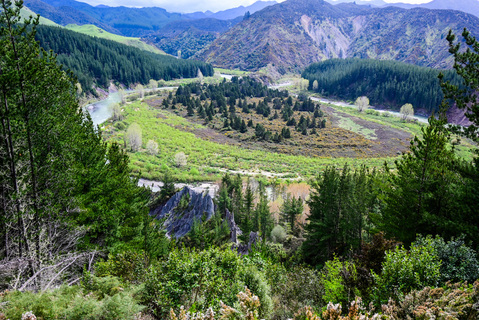 Enjoy a unique view of a the Mohaka River as it snakes through the valley below, doubling back upon itself and forming a small island.